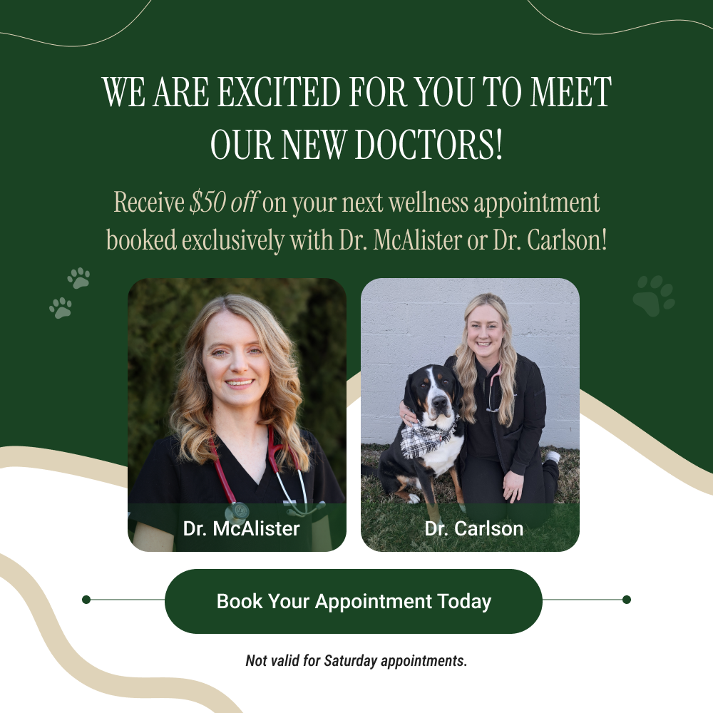 At Dogwood Trails Animal Hospital, new clients can earn $25 OFF your first visit! Ask us how! We proudly support our Veterans and Civil Service members with a 10% discount. We are dedicated to the health and well-being of Bentonville and NWA’s beloved companion animals. Whether you’re bringing in a new furry family member or seeking exceptional care for your pet, we’re here to provide the best veterinary services. Same-day appointment available too!